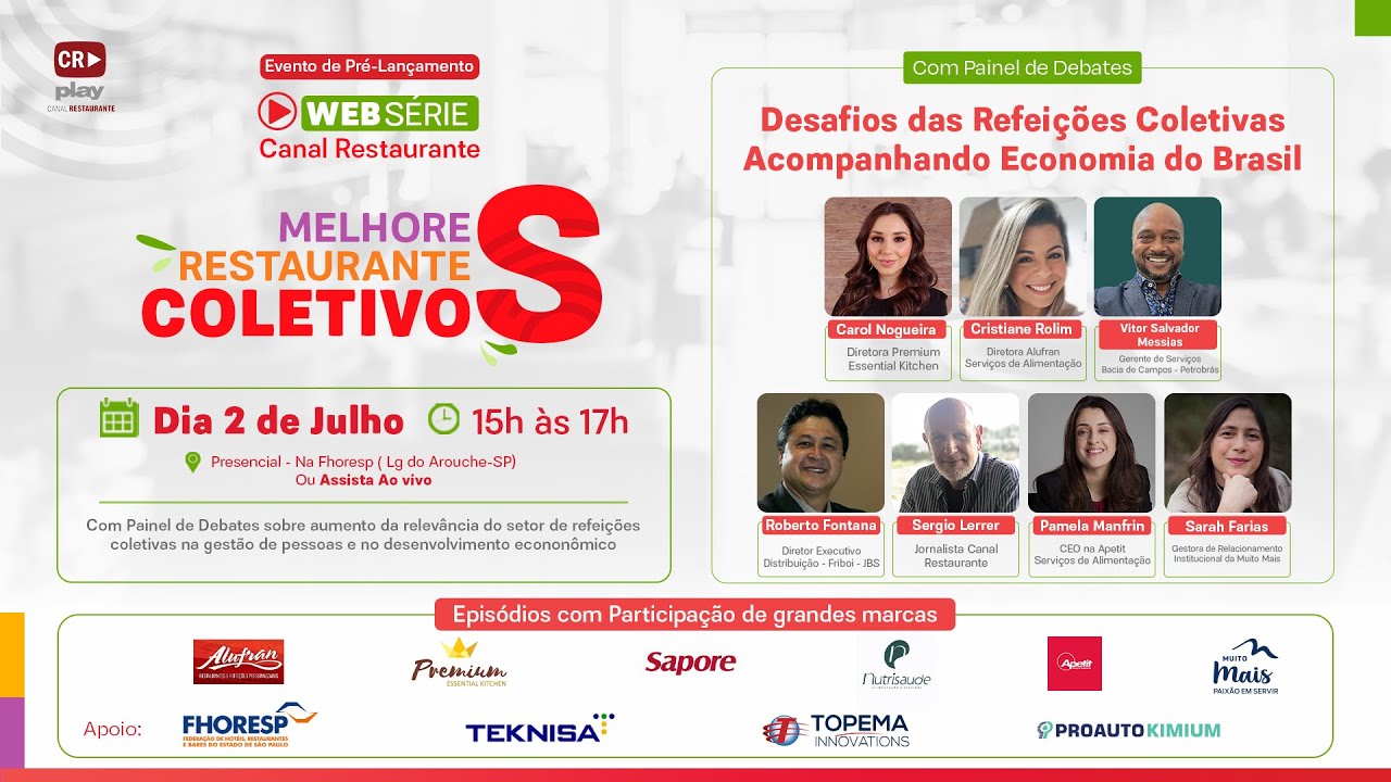 Serão episódios quinzenais, disponibilizados no Canal Restaurante ( www.canalrestaurante.com.br) e nas redes sociais. E cada um abordará um desafio de serviços do setor de refeições coletivas, que envolvam qualidade, logística, refeitórios diferenciados e modernização.