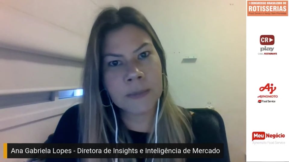 Ana Gabriela Lopes, Diretora de Insights e Inteligência de Mercado do Ifood, fez relato sobre a adesão de rotisserias ao delivery, inclusive de supermercados, com expansão de mais de 200% em seus resultados.