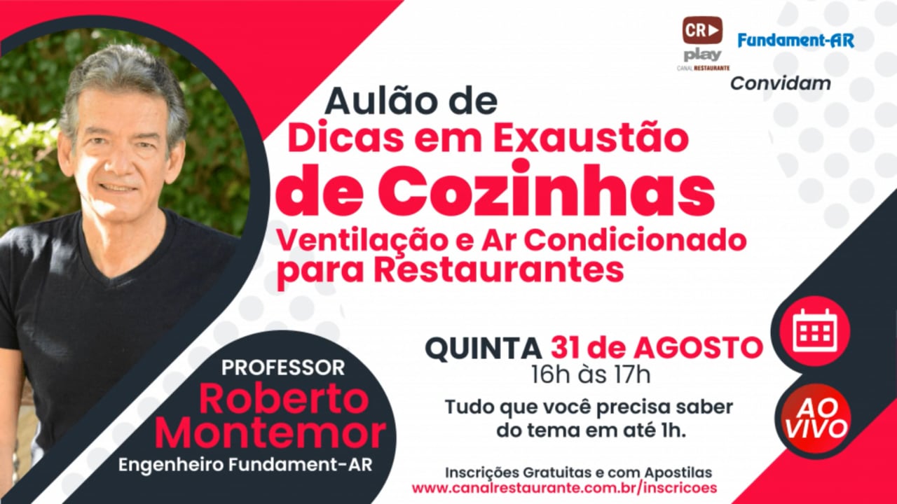 O Canal Restaurante realizou em parceria com a Fundament-AR, o Aulão de Dicas de Exaustão de Cozinhas, Ventilação e Ar Condicionado para Restaurantes, atividade de 1 hora de duração,com uma visão ampla, geral, mas detalhada, de como alcançar acertos e efetividades nestas implantações, e evitar incompatibilidade, inadequações e prejuízos.