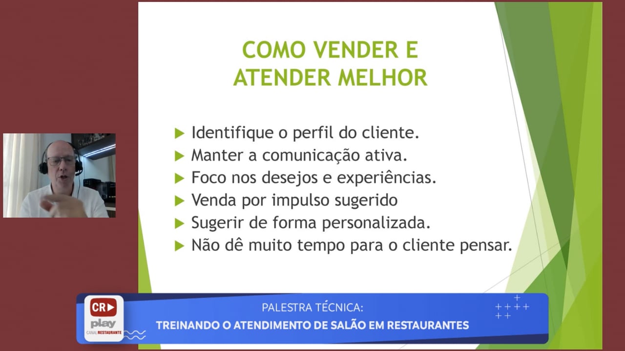 O palestrante sobre o tema é Paul William Gregson, que atua há mais de 30 anos na capacitação de gestores e profissionais do segmento de gastronomia e hotelaria, oferecendo as melhores práticas e ferramentas para otimizar suas operações, por meio de análise de resultados e otimização de recursos, redução de custos (controle e gestão de compras e estoques), otimização de receitas e ganho de lucratividade, cliente oculto, mixologia e outros.