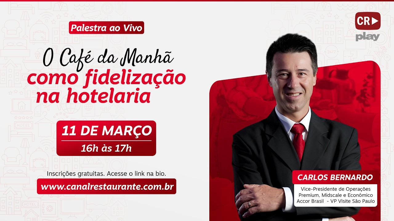 Palestrante será CARLOS BERNARDO, Vice- Presidente de Operações Premium, Midscale e Econômico da Accor Brasil e também Vice-Presidente do Visite São Paulo.