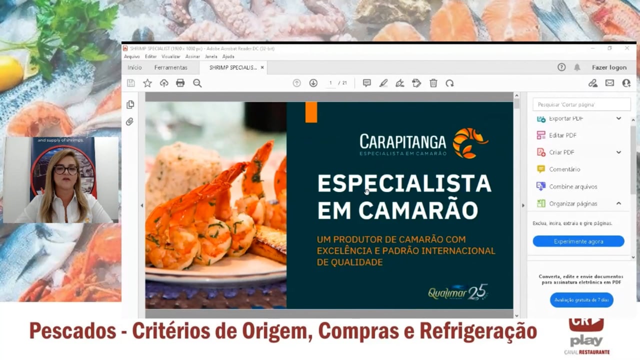Palestra técnica feita no evento ao vivo "Seminário de Pescados".