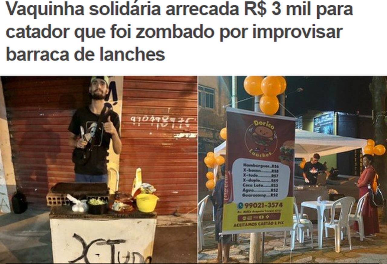 A história do Dorico ganhou espaço nos jornais relevantes de todo país: uma história bem brasileira. Sem perspectivas, de crise em crise destruindo suas iniciativas, achou uma chapa elétrica no lixo, e depois de zombado nas redes sociais pela simplicidade de sua iniciativa, teve o apoio de um amigo dono de pizzaria, de uma vaquinha virtual e ganhou as manchetes.