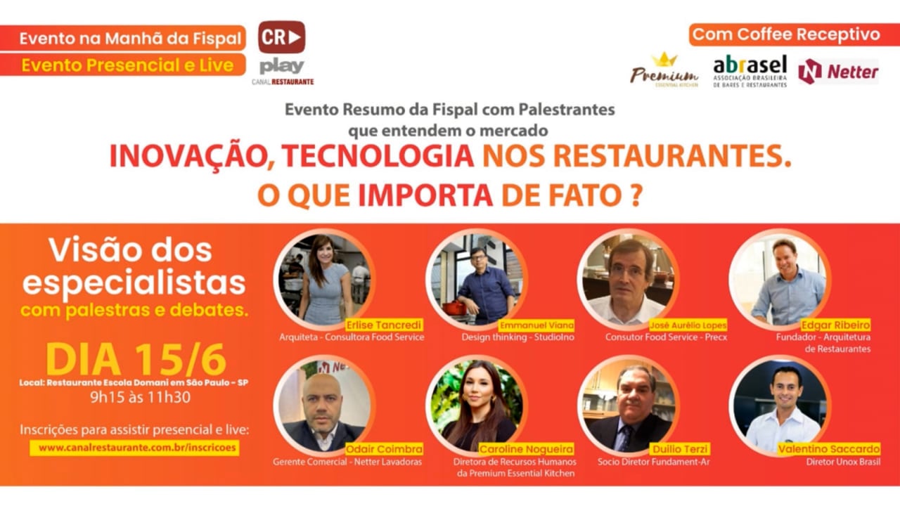 O evento teve a visão de grandes especialistas brasileiros em consultoria de restaurantes, do ponto de vista de tecnologia, estrutura e funcionalides. São eles: