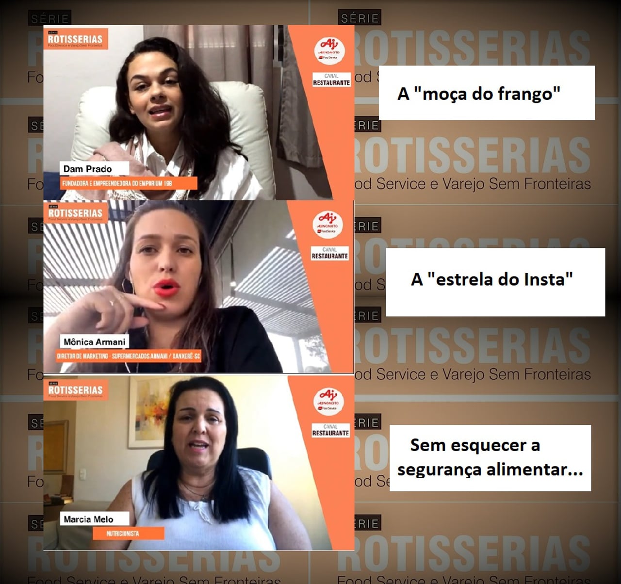 Neste episódio da Série “Rotisserias – Food Service e Varejo Sem Fronteiras” conheça a história de Dam Prado, empreendedora que criou o Empórium 198 em Guarulhos, começando com o comércio de um Frango Assado memorável. De Mônica Armani, que prestes a ter o supermercado da família falido, investiu toda sua energia no instagram , salvou o negócio e virou especialista do setor. E Márcia Melo, nutricionista com repertório de soluções e conhecimentos, que passa diretrizes a respeito dos desafios de segurança alimentar das rotisserias.