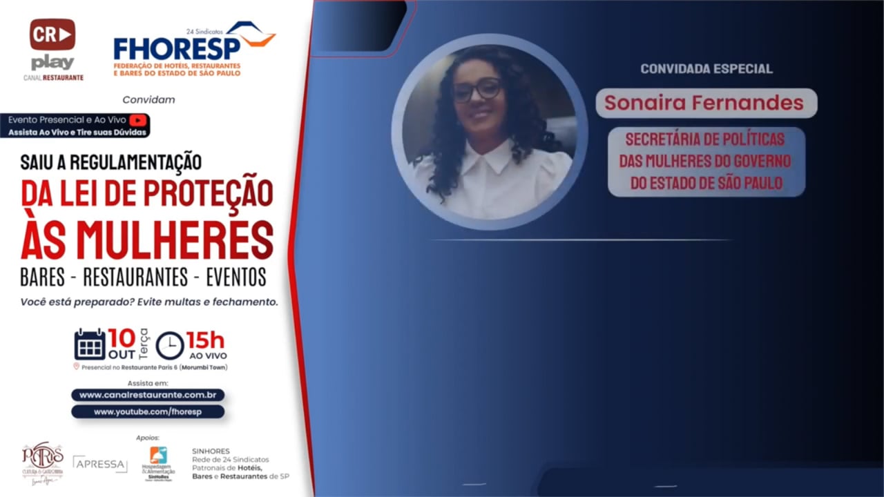 Evento realizado apresentou esclarecimentos sobre a regulamentação da Lei de Proteção às Mulheres, em ambientes de bares, restaurantes e eventos. Com participação da Secretária Estadual de Política das Mulheres, Sonaira Fernandes, do Governo do Estado de São Paulo.