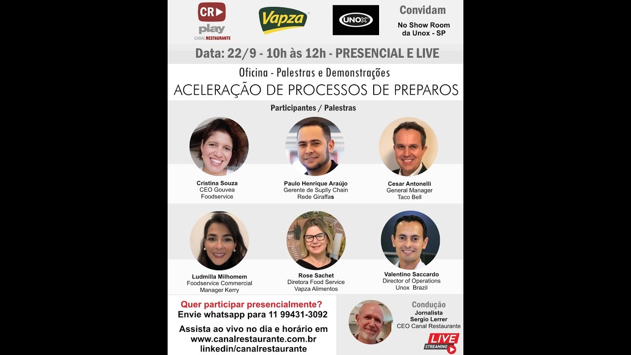 Palestrantes: * Cristina Souza, CEO da Gouvea Foodservice * Paulo Henrique Araújo, Supply Chain da Rede Giraffas * Ludmialla Milhomem, Foodservice Comercial Manager da Kerry Brasil * César Antonelli, General Manager do Taco Bell * Rose Sachet, Diretora de Food Service da Vapza Alimentos * Valentino Saccardo, Director of Operations Unox Brasil