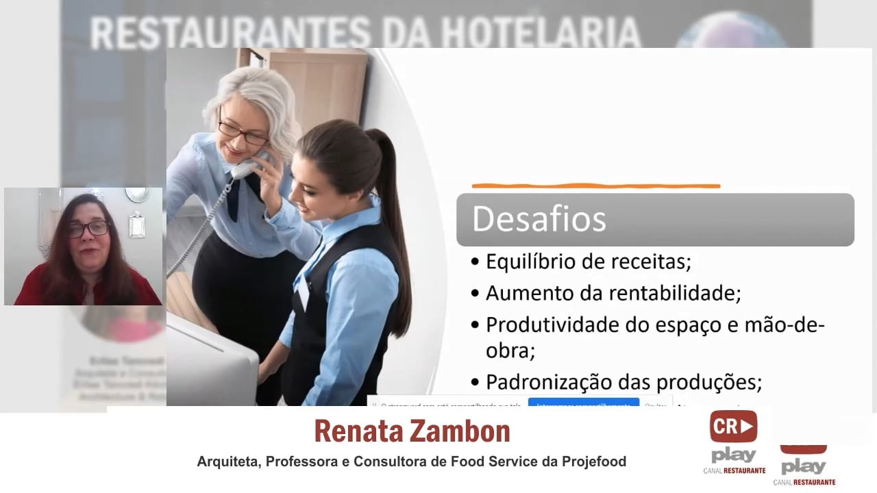 Pontos de análise e evolução deste setor específico foram destacados pela arquiteta Renata Zambon, fundadora da Projefood e professora do SENAC, em evento live sobre Restaurantes na Hotelaria no Canal Restaurante.